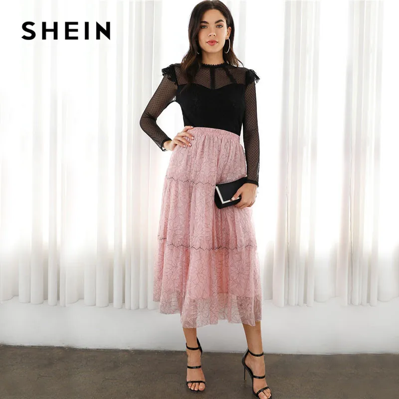 SHEIN Black Ruffle Hem Dot Contrast Mesh Mock-Neck Slim Fit Top High Neck Long Sleeve Placket Blouse Women Autumn Plain Tops,SHEIN Black Sheer Contrast Mesh Yoke Sweetheart Neck Round Neck Top Women Spring Elegant Autumn Casual Plain Tops and Blouses, SHEIN Black Sheer Contrast Mesh Yoke Sweetheart Neck Round Neck Top Women Spring Elegant Autumn Casual Plain Tops and Blouses