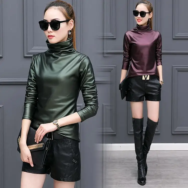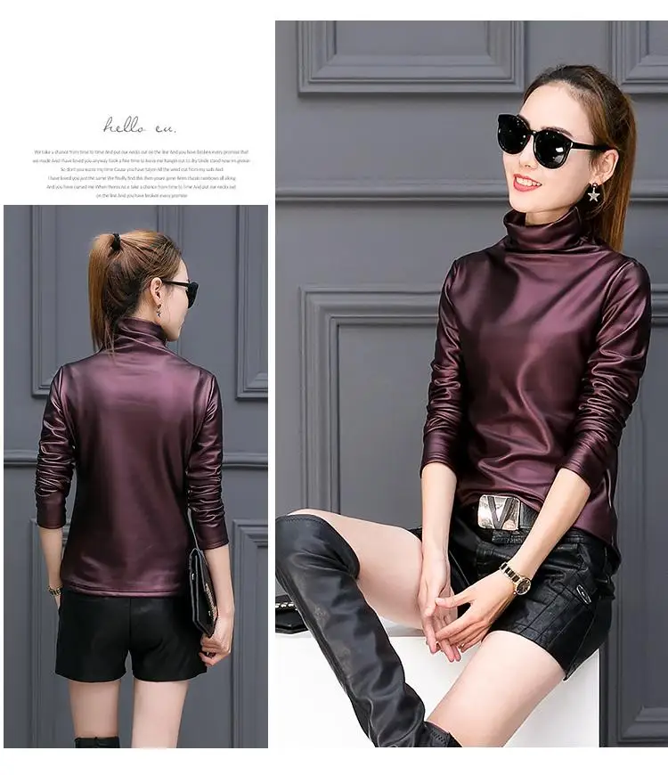 astounding European Punk Plus Size Women Blous Autumn Turtleneck Long Sleeve Tops Shirt Ladies Velvet Stretch