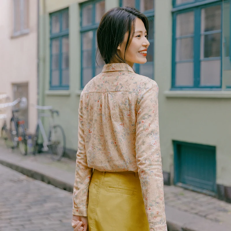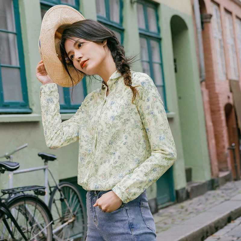 discounted INMAN 2020 Spring New Arrival Literary Retro Lapel Print Single-breasted Loose Long Sleeve Blouse