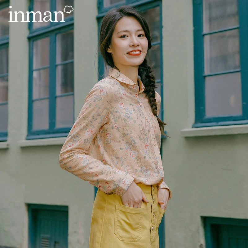 remarkable INMAN 2020 Spring New Arrival Literary Retro Lapel Print Single-breasted Loose Long Sleeve Blouse