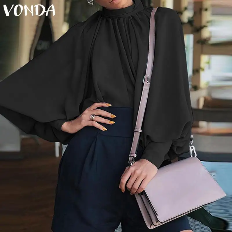 incredible VONDA Plus Size Blouse Women 2019 Spring Tunic Sexy O Neck Long Lantern Sleeve Shirts Casual Loose